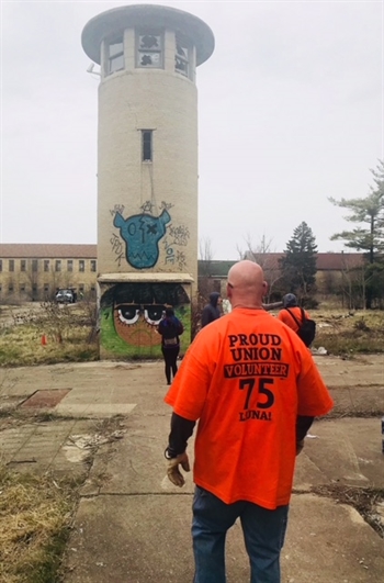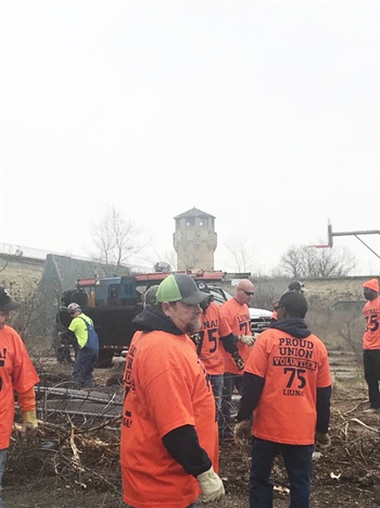 On Saturday, April 20, 2018, hundreds of skilled union tradespeople with the Will & Grundy County Building Trades and Laborers’ Local 75 donated their labor, many of whom performed specialized tasks, to safely clean the old Joliet prison. Having been shuttered by the state nearly two decades ago, the City of Joliet and the Joliet Area Historical Museum’s goal is to refurbish the old prison on Collins Street and to turn it into a tourist attraction with guided tours. There is a lot of work to be done. Without the hundreds and thousands of dollars of donated labor from union members, the project would not be possible.