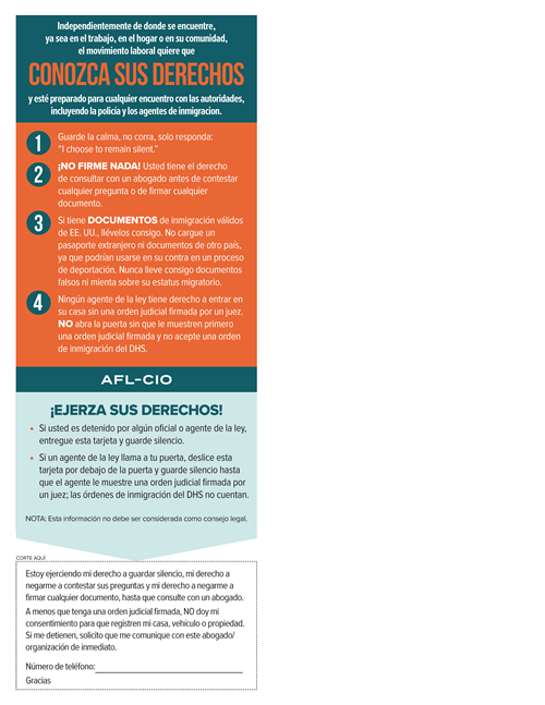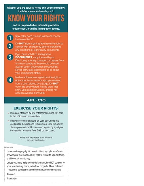 1) AFL-CIO’s Know Your Rights cards with small right to remain silent portion at the bottom