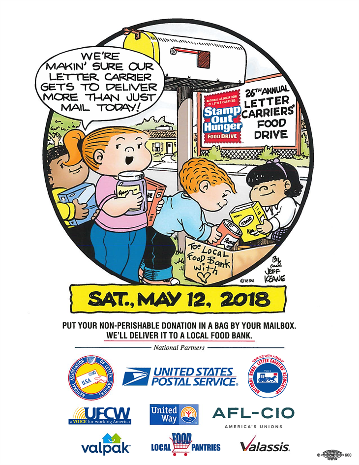 May 9, 2018 - CLDC LMCC LECETThe National Letter Carriers' Annual food drive is this Saturday, May 12. Place your bag of non-perishable donations next to your mailbox and your letter carrier will deliver it to a local food bank.