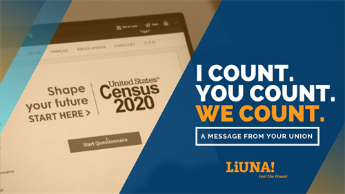 LIUNA members are being encouraged to participate in the 2020 U.S. Census, which will help determine congressional and state legislative district lines, as well as allot federal resources for transportation, infrastructure, and education.